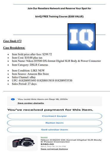 Through local Amazon bin stores, we meticulously select the most profitable items, a method we now share through our binIQ app to help others achieve similar success. Our training courses will guide you through the intricacies of the